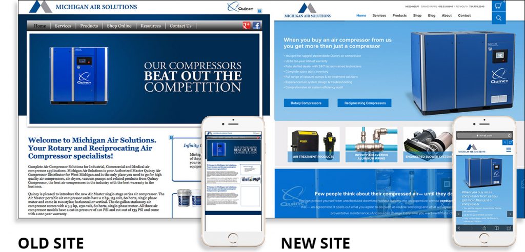 Michigan Air Solutions, an industrial compressor and air systems distributor, initially contacted us to redesign their website. After reviewing their analytics we discovered that they were receiving only 1-2 website leads per month from their website.