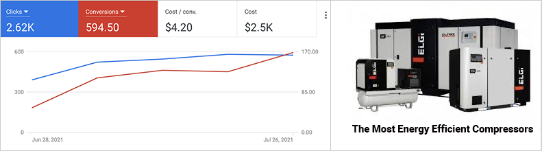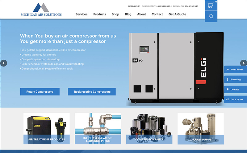 Michigan Air Solutions, an industrial compressor and air systems distributor, initially contacted us to redesign their website. After reviewing their analytics we discovered that they weren’t generating many visitors and only received 1-2 website leads per month from their website.