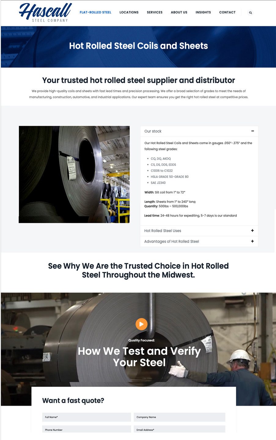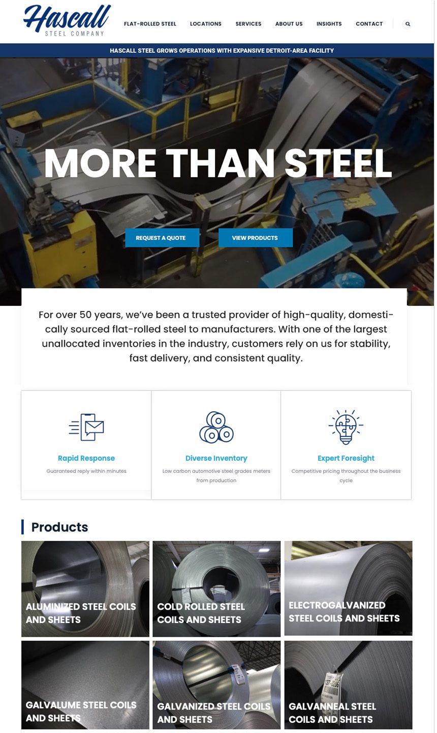 Hascall Steel’s previous website was outdated and not mobile-friendly, making it difficult for users to quickly find the information they needed.